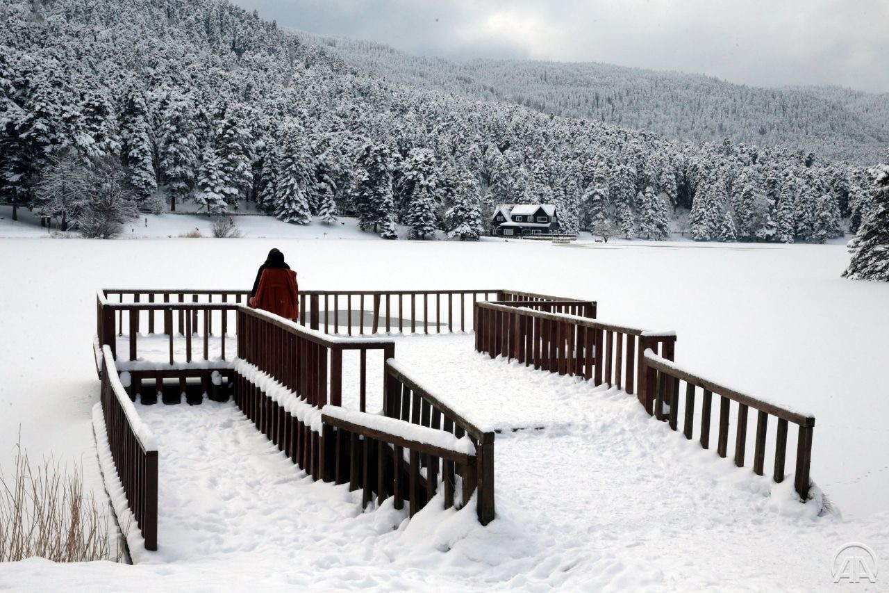 تجمد سطح بحيرة "غولجوك" إثر انخفاض درجات الحرارة ليلة أمس، في ولاية بولو شمال غربي #تركيا.