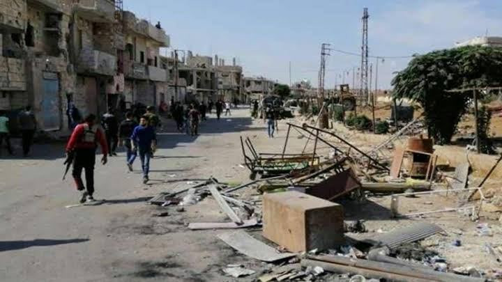 ونقل التجمع عن قيادي سابق في فصائل المعارضة قوله، إن سيارة من نوع هايلوكس لونها أسود تقل عدة أشخاص من خارج بلدة المزيريب، يرافقها دراجات نارية، استهدفوا مبنى ناحية الشرطة.