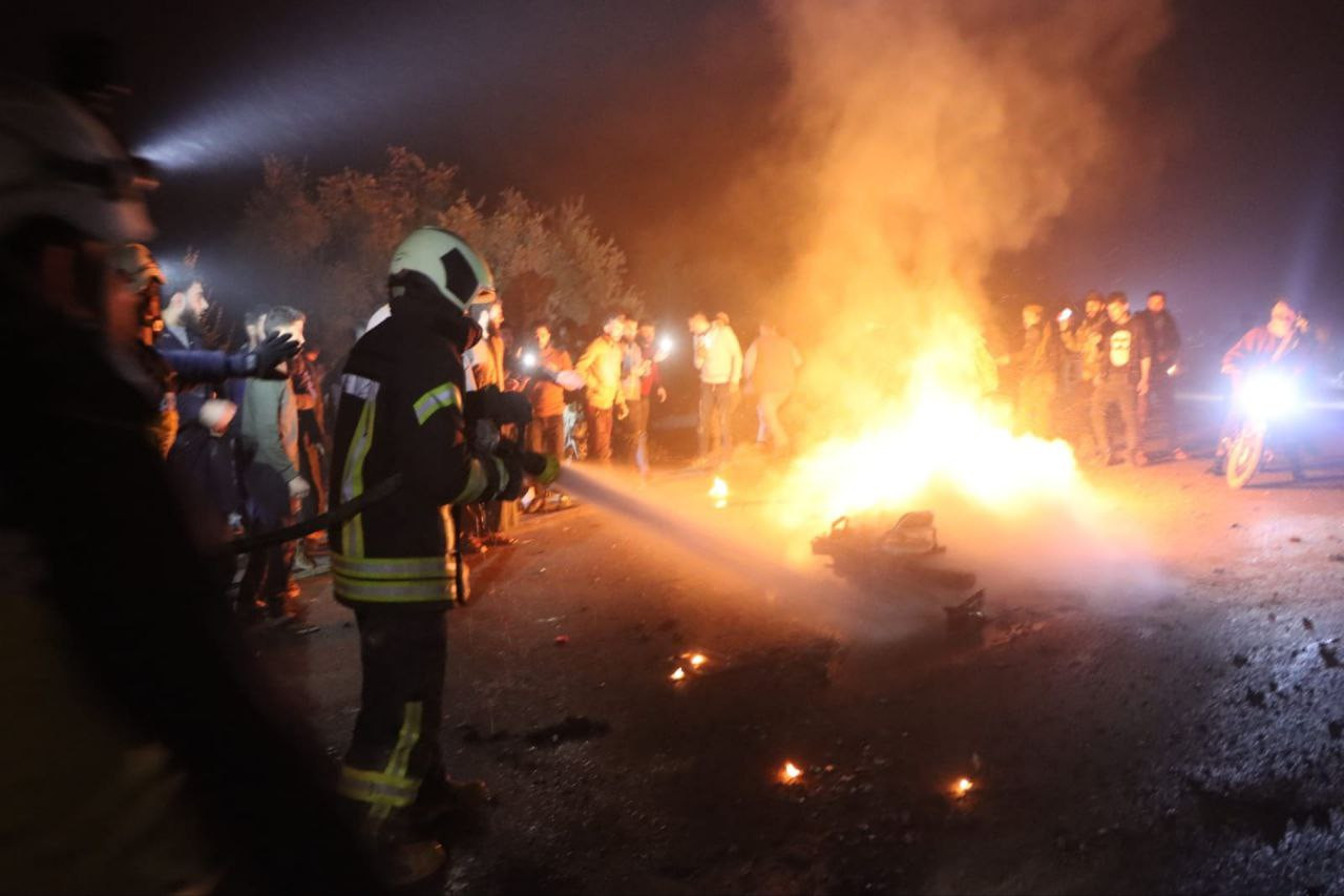 من جهته، قال الدفاع المدني السوري إن شخصين قتلا بقصف صاروخي من طائرة مسيرة مجهولة الهوية، استهدف دراجة نارية على طريق قاح ـ دير حسان في ريف إدلب الشمالي.