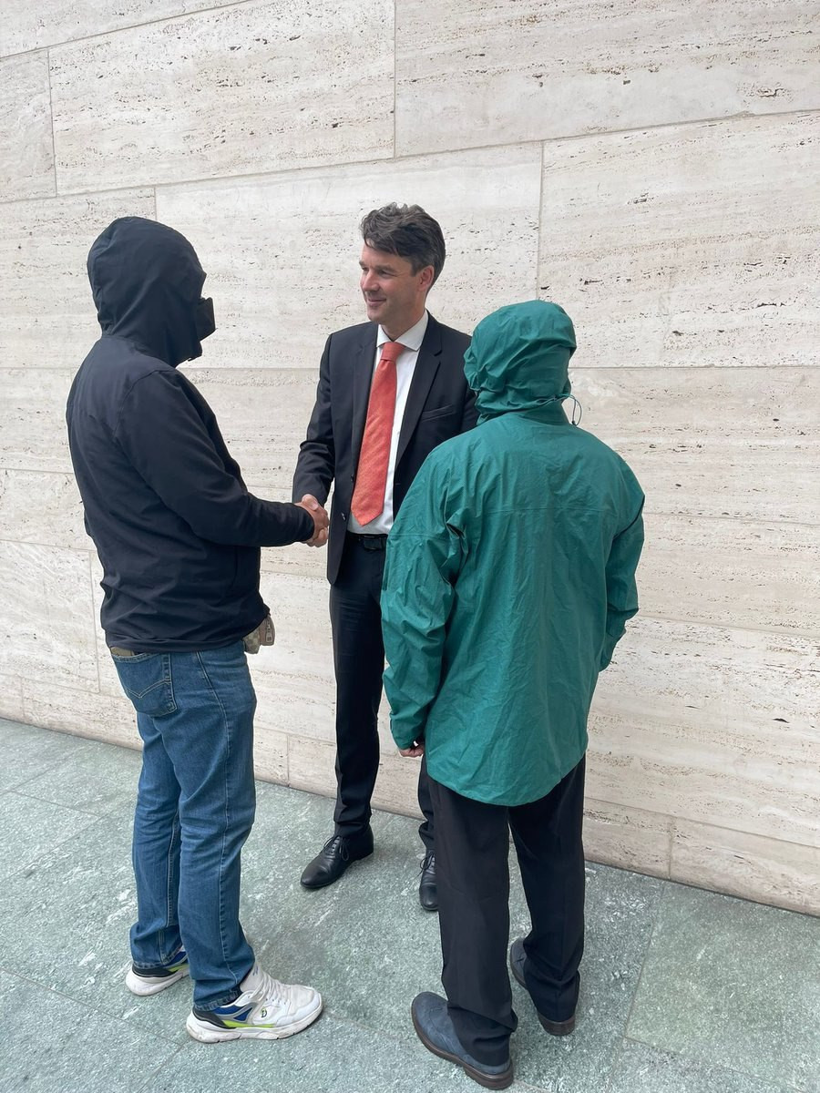 وجرى اللقاء الذي عقد في وزارة الخارجية الألمانية بالعاصمة برلين، بتنظيم "المنظمة السورية للطوارئ"، وقالت المنظمة السورية للطوارئ في تغريدة إن المبعوث الألماني إلى سوريا "ستيفان شنيك" التقى السوريين المعروفين بـ"حفار القبور وسائق البلدوزر"، في جلسة استماع لشهاداتهما عن الجرائم ضد الإنسانية التي ارتكبها النظام السوري، وهما من الشهود الرئيسيين على جرائم الحرب ضد الإنسانية، والمقابر الجماعية التي دفنت عشرات الآلاف من الأشخاص.